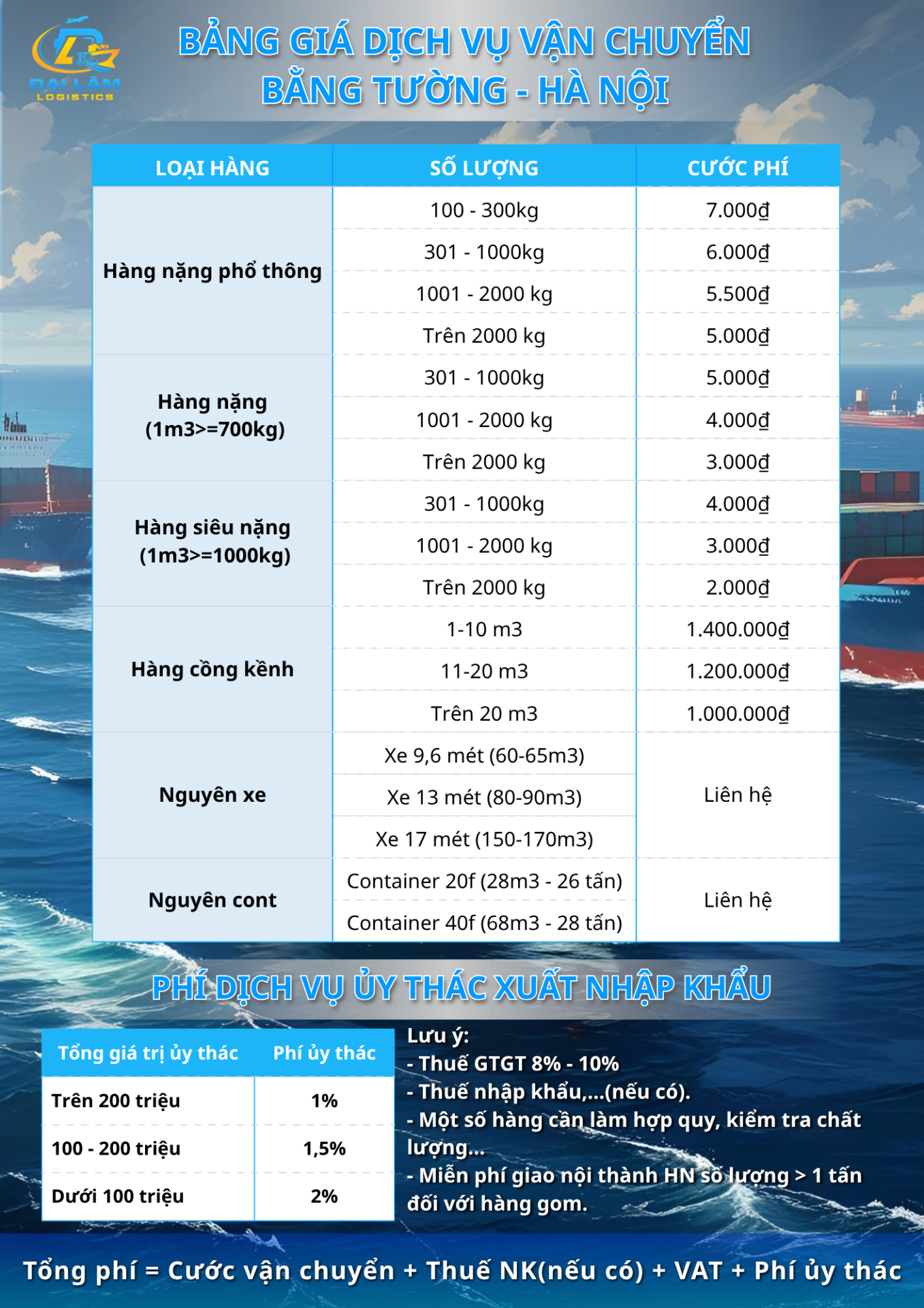 | LOẠI HÀNG | SỐ LƯỢNG | CƯỚC PHÍ |