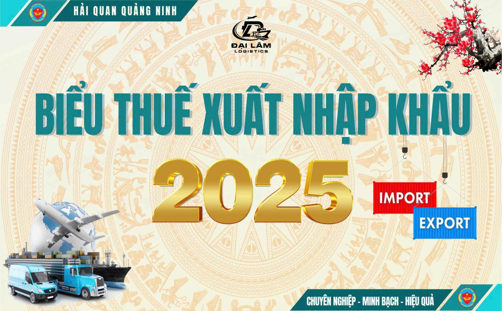 Biểu thuế xuất nhập khẩu 2025 chính thức có hiệu lực từ 01/01/2025, mang đến những thay đổi đột phá ảnh hưởng trực tiếp đến chi phí và chiến lược kinh doanh của doanh nghiệp. Với 15 năm kinh nghiệm tư vấn logistics, Đại Lâm Logistics tổng hợp đầy đủ thông tin mới nhất, giúp bạn tối ưu hóa lợi nhuận và tuân thủ pháp luật.